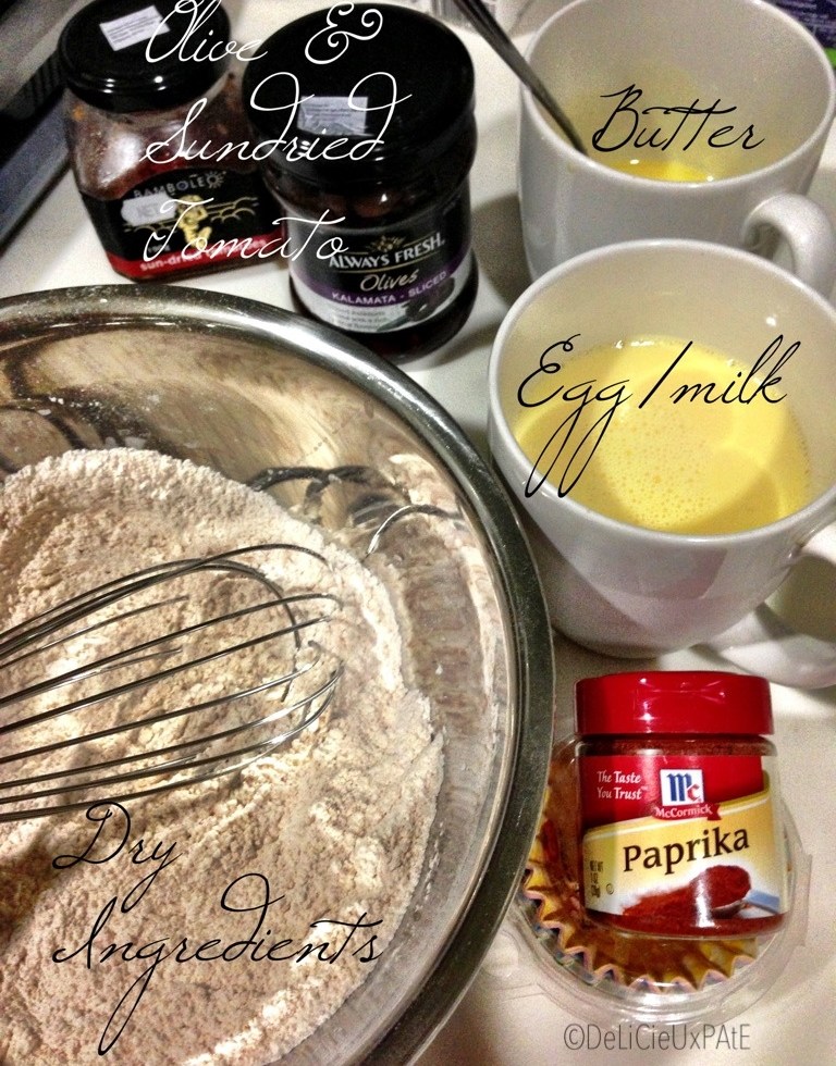 Olives, sundried tomatoes and paprika muffins
