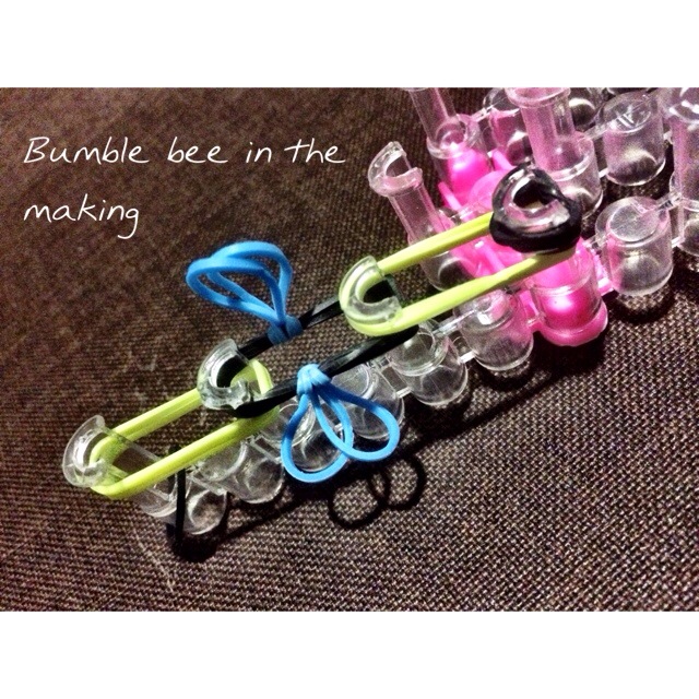 8. Hoop back all black bands on 3rd pin to 2nd pin. Then pull the wings up so that they stay on top of the bee