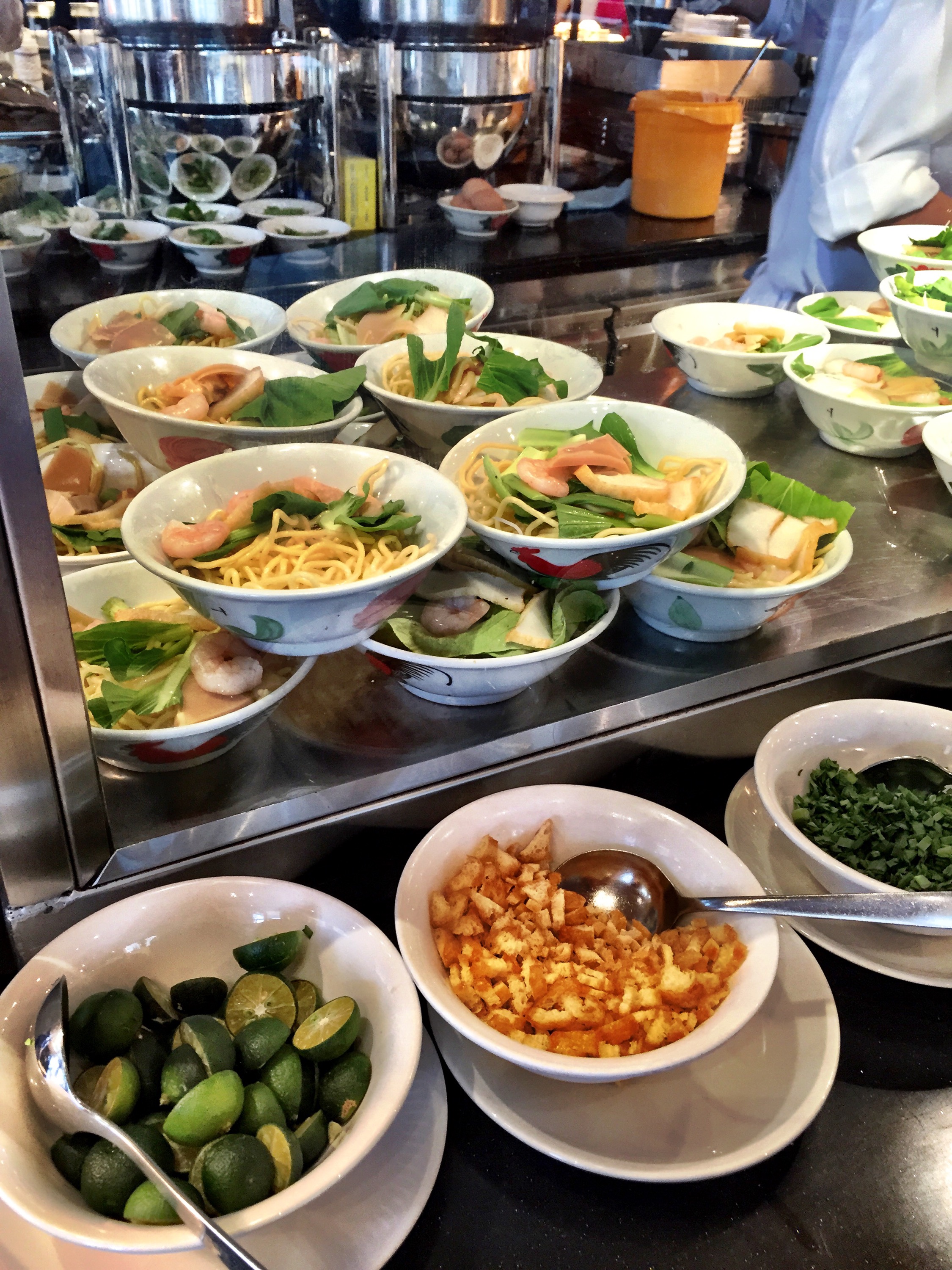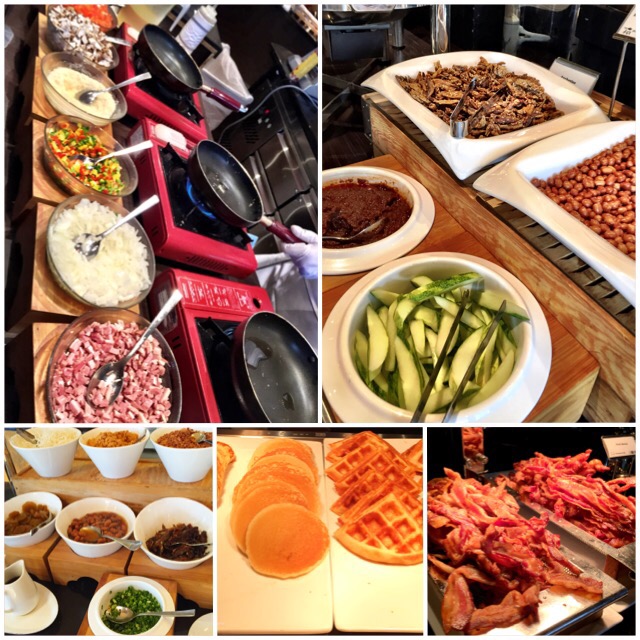 The station with most variety was next to the outdoor area. Eggs, dim sum, bacon and sausages, tomatoes and baked beans, Chinese noodles, waffles and pancakes, baked chicken pao (a Malaysian favorite, which is also called Siew Bao), nasi lemak (another local favorite), Chinese porridge and condiments. Glad to see the traditional kopi (coffee) and toast set available. While trying the traditional coffee, we suggest adding both evaporated and condensed milk to ensure a thick cup of enjoyable coffee.