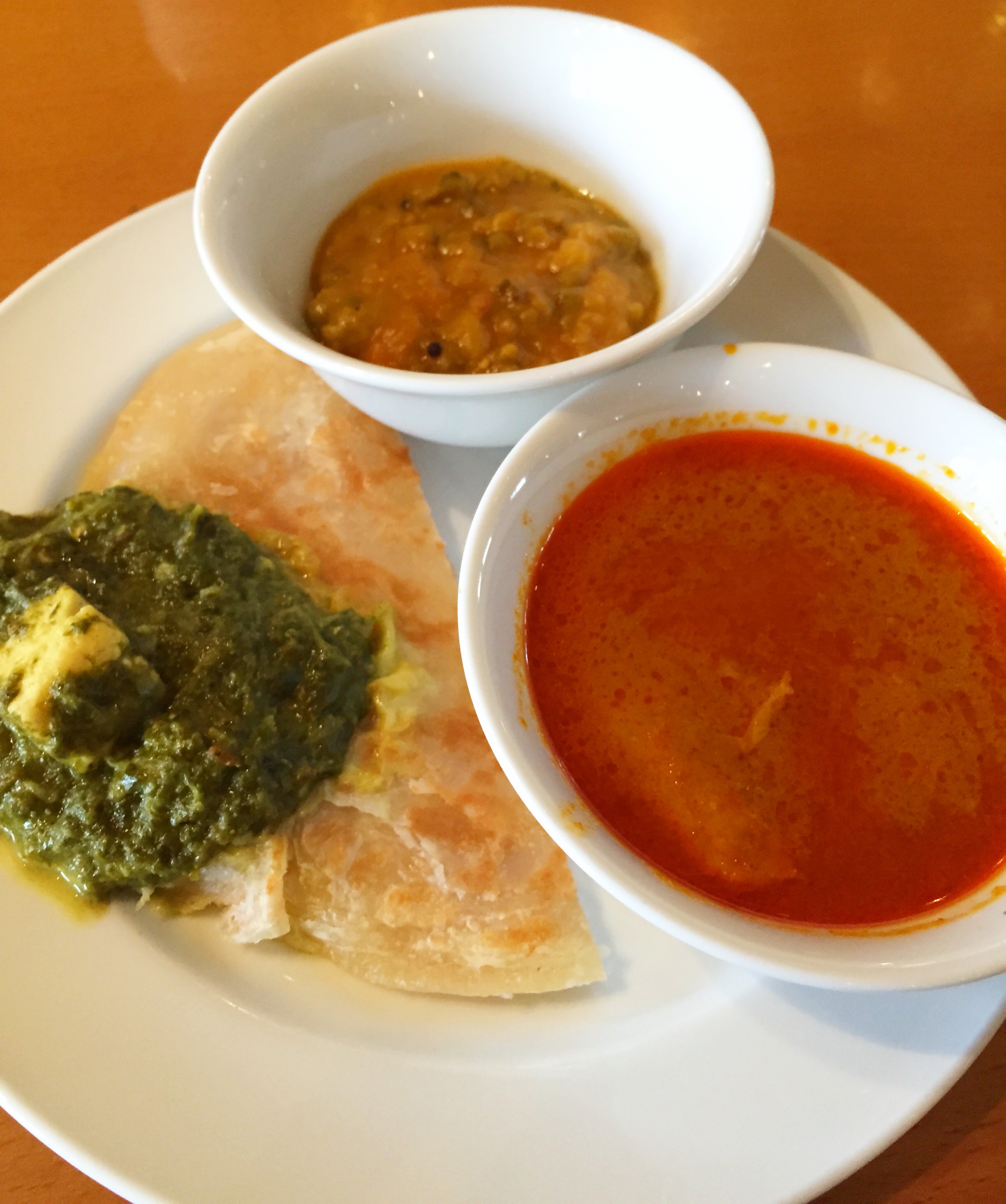 There’s Indian on one side of the salad bar and they offer dhall curry, spinach with feta, some Indian salads and prata with curry chicken (a local favorite). Loved the dhall curry.