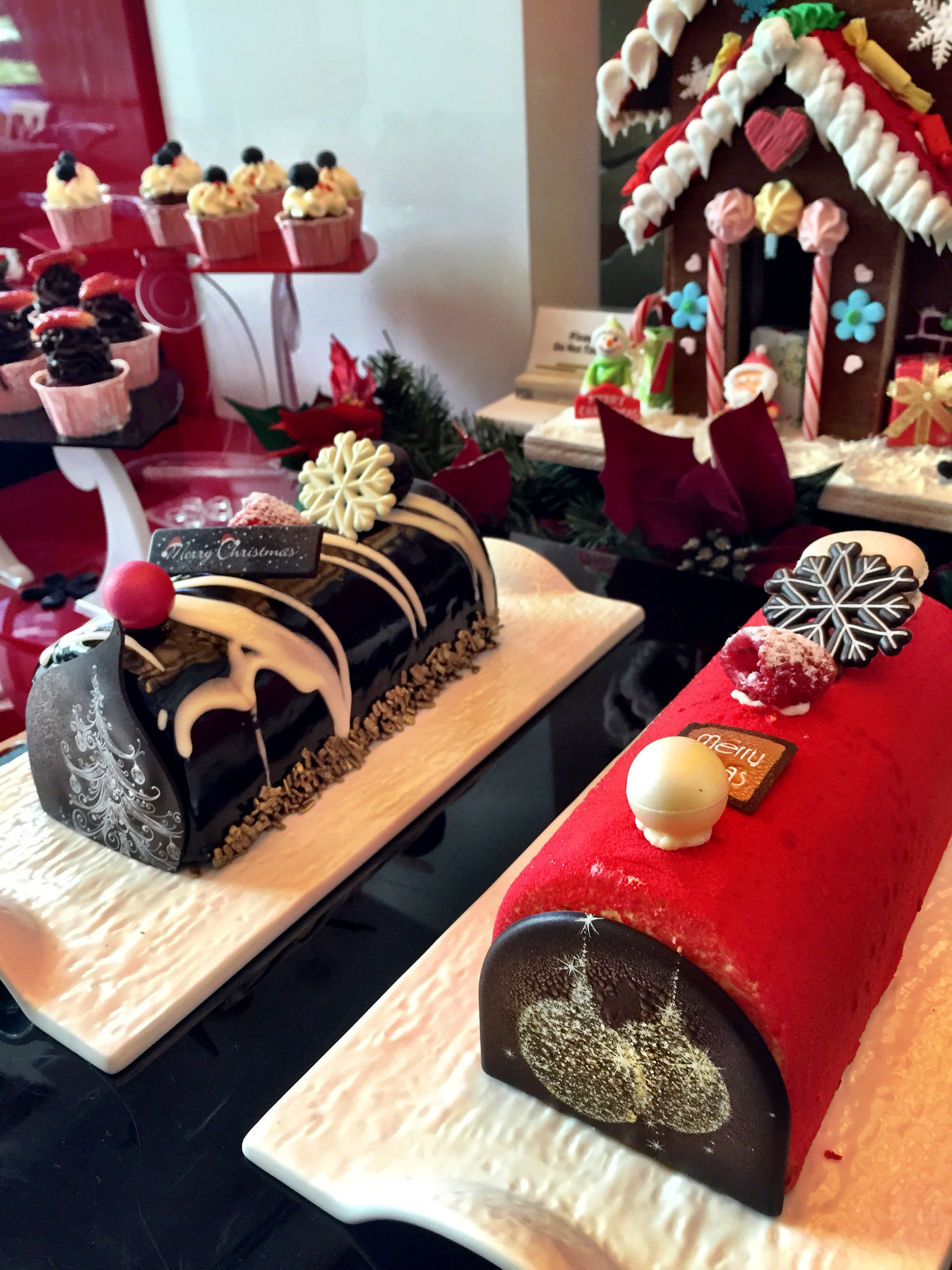 Desserts – log cakes (as it was the festive season), tau suan (split mung bean dessert), Cheng tng (another Chinese dessert with a variety of ingredients), cupcakes, and more including fruits were available. There was also an ice kachang station.