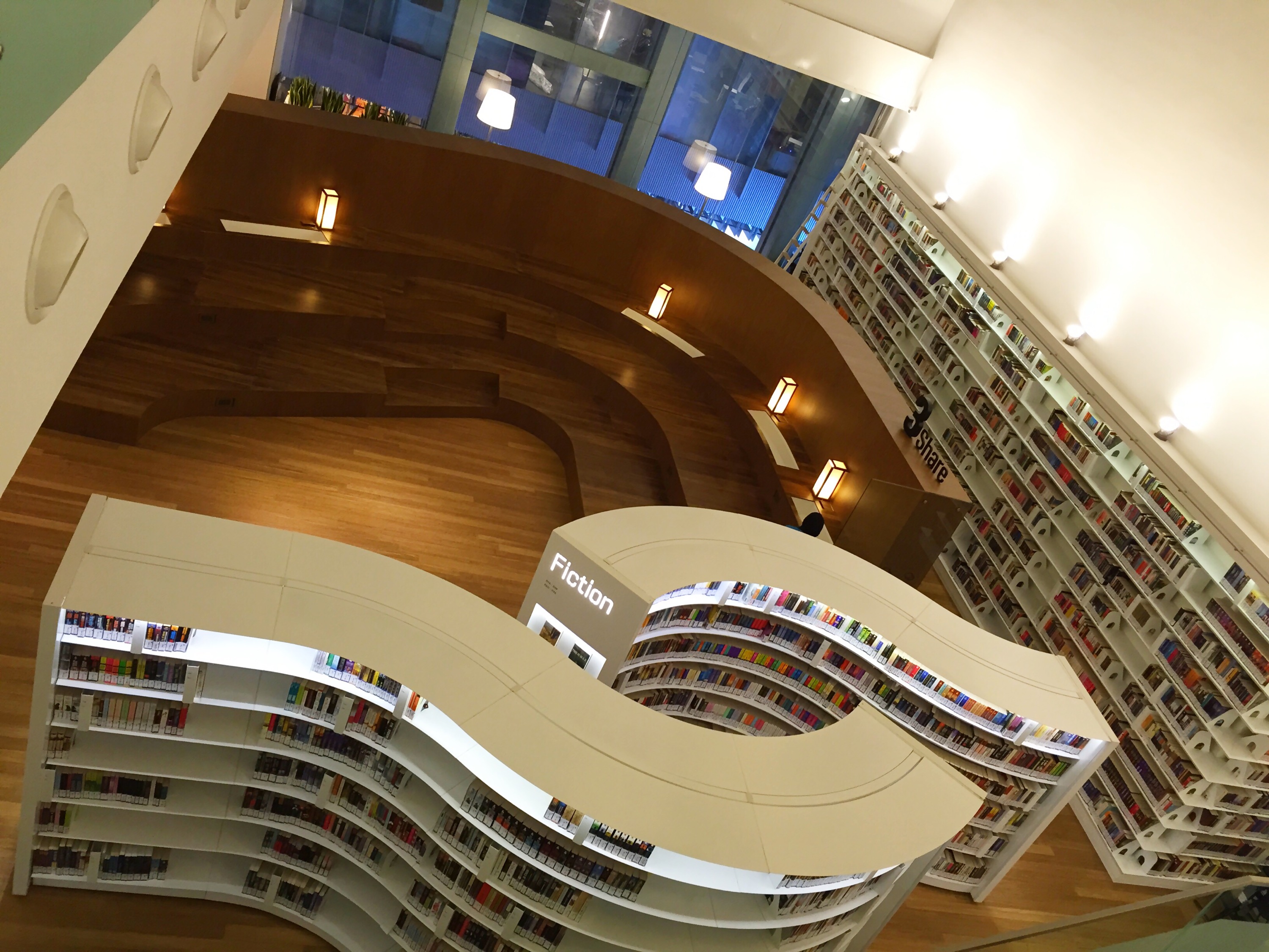 The curved shelves were also brilliant. From level 4 or on the stairs, the shelves looked like art forms.