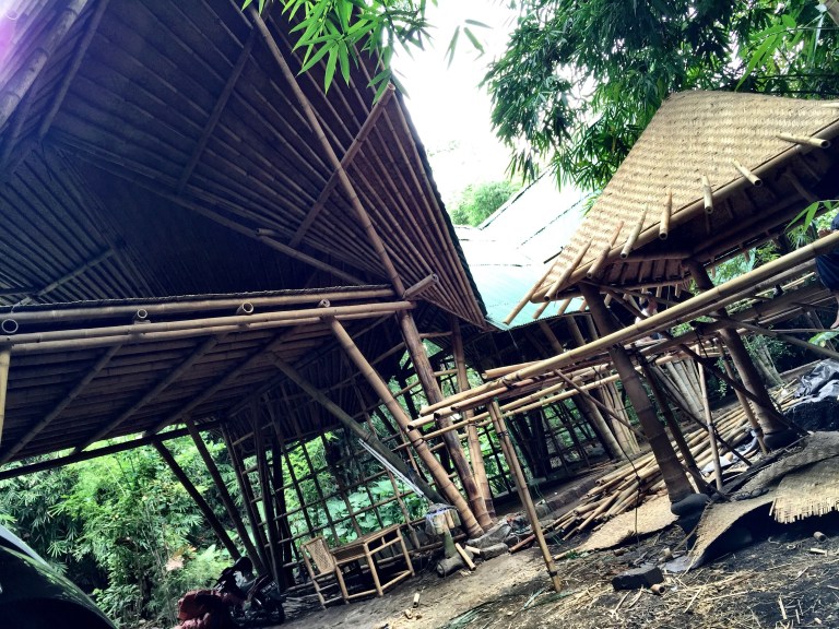 Amazing architecture in construction, and villas made entirely using bamboo. No nails! See me standing next to the beautiful bamboo swivel door and the little hut is the Eco toilet. Green bamboo tunnel to the villas.