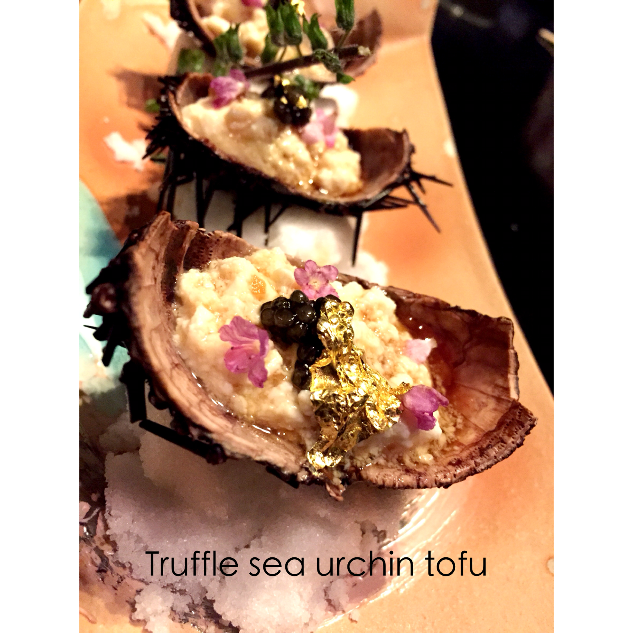 The uni is hidden under the lightly marinated tofu. With shiso flower’s fresh taste bringing out the creaminess of the tofu and uni, this light starter is a good choice for those with a delicate palate.