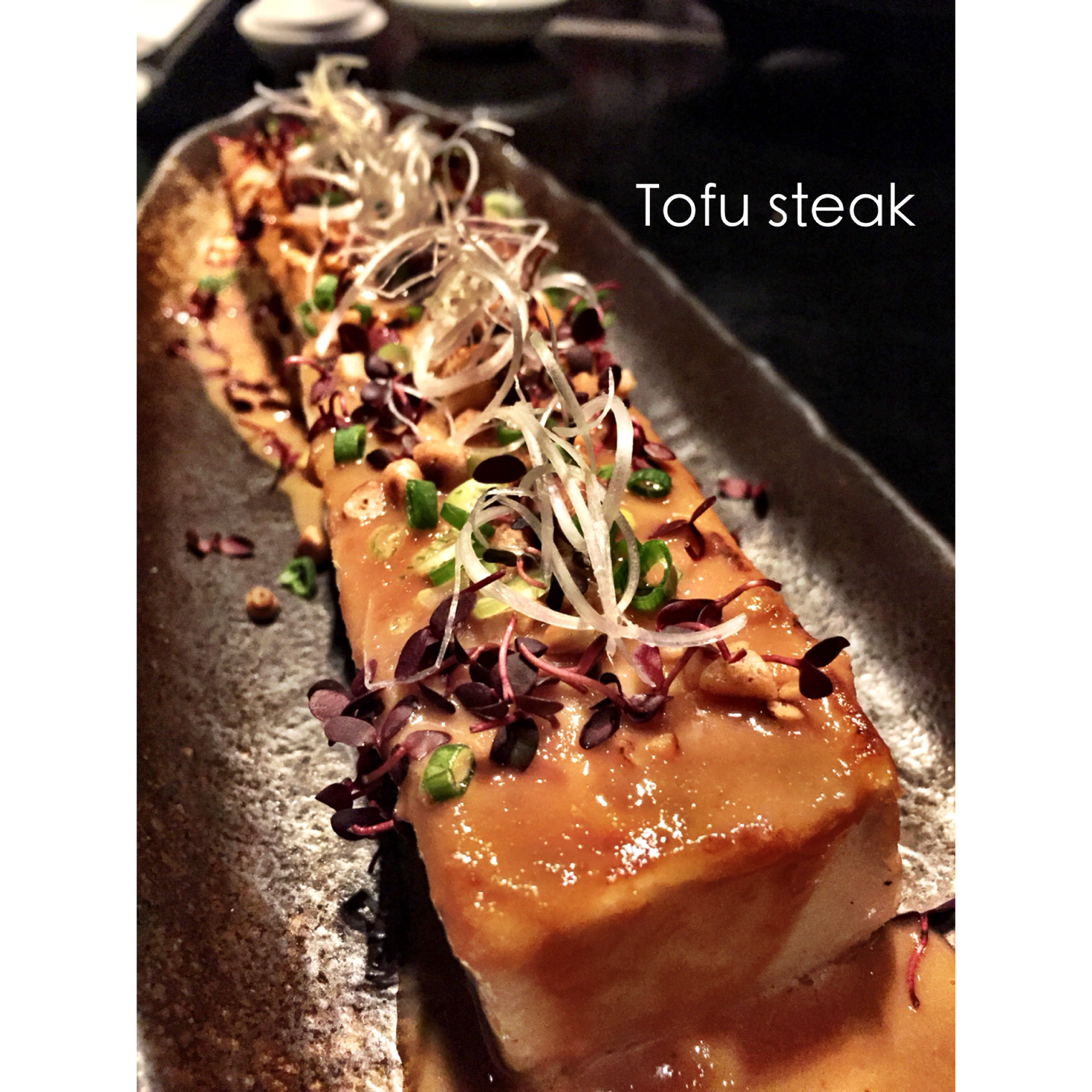 Silken tofu with a very thin layer of coating with miso ginger pine nut sauce, julienned spring onion, though did not look like it came from the hot plate (teppan) was delicious. Great for a light healthy meal as it can be filling.