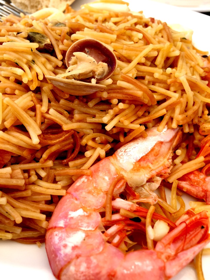 Yummy lunch of fideuà, beer, sangria (rambla Vella) and gelato