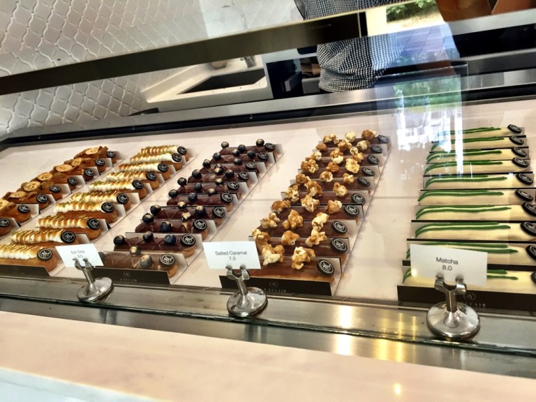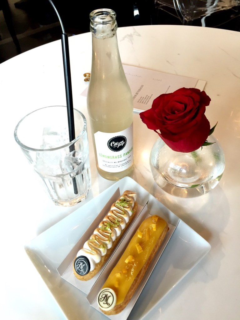 We tried their chicken bacon pie, lemon meringue and mango passion fruit eclairs, and lemongrass pandan soda. We then took away dark chocolate, earl grey, strawberry pistachio, salted caramel.