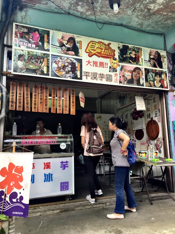 Pingxi 平溪 means calm creek. There are more shops and food stalls made famous by local stars. These were the Taiwanese black pig sausages and yam balls stalls. There were also a few wall art around the vicinity. There’s more things to explore here – the temple, eight deity hole, goddess of mercy cave.