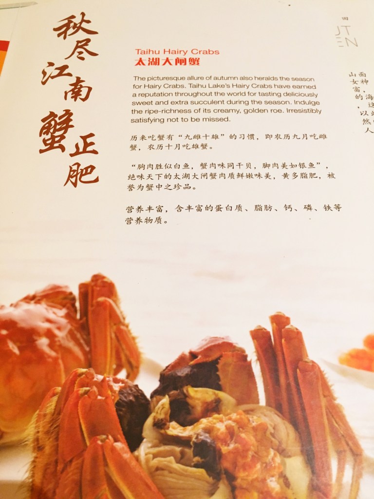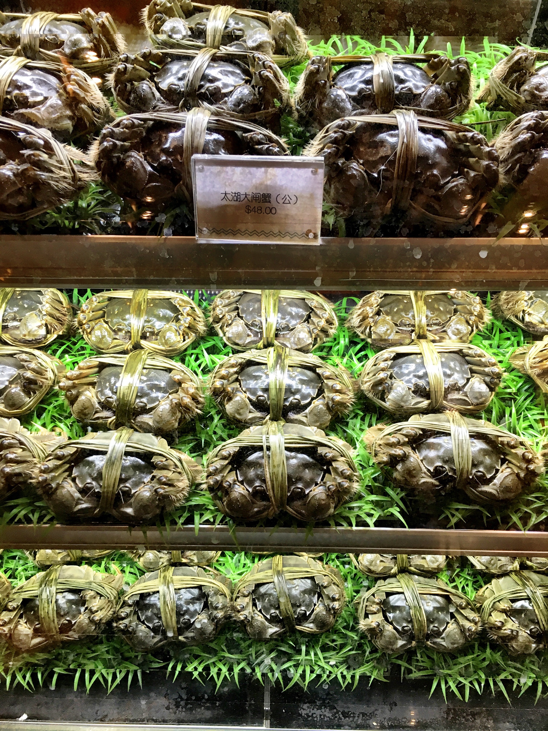 It’s autumn! And a good season for hairy crabs (大闸蟹) which are lined up at the entrance of the restaurant.
