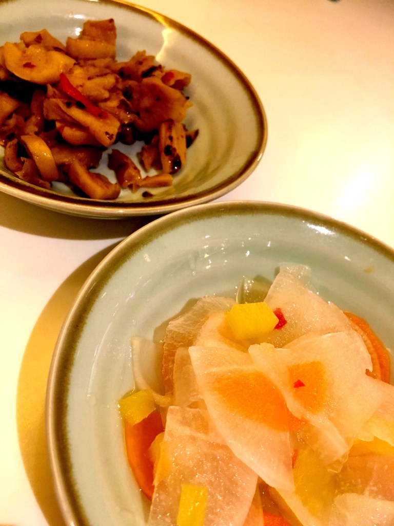 2 types of radish were served as appetizers. One was pickled, slightly sour and sweet while the other chaipo (菜埔) usually chopped and used to make omelette/ sprinkled on steamed fish was presented in small chunks. They were slightly sweet and salty.