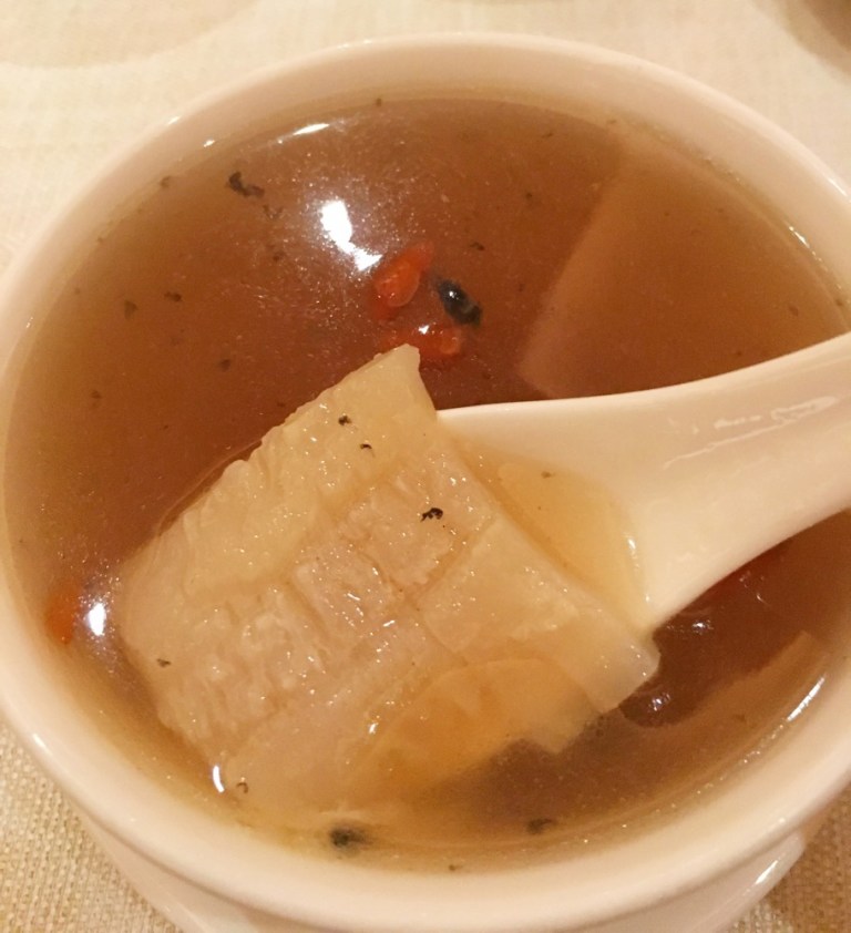 Next up, the black chicken fish maw soup with lingering fragrance we smelled when we walked into the restaurant… We knew we had to order. At $100 a serve (enough for 8) there were some lean pork which were quite dry as their flavor went into the soup, black chicken pieces which are nutritious, cooked till the bones were powdery, and soft pieces of fish maw. The soup was so delicious, I could not resist a second helping.