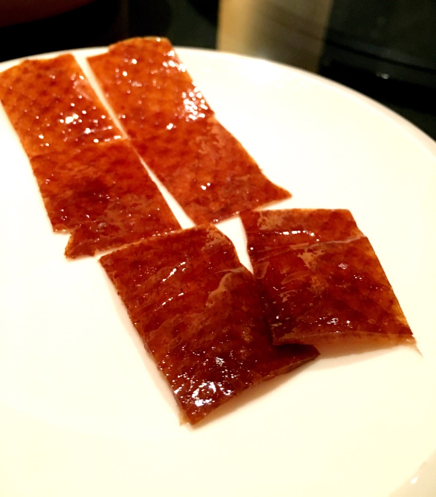 Then the star dish of the night was served with a chef slicing up the duck in front of us. The Peking duck is something we can order beforehand. The reservation staff asked if I would like to order a duck, and of course I said YES please! We were asked to start with the skin. Fat free almost, just the very top crispy part of the skin and we were supposed to eat them dip with some sugar. Then the crepe wrap was served with some cucumber and julienned spring onions with the sliced up duck meat. We would take a piece of crepe, top with some cucumber, spring onion, duck meat, sweet sauce and wrap it up before we eat them (no photos on this process, sorry)
