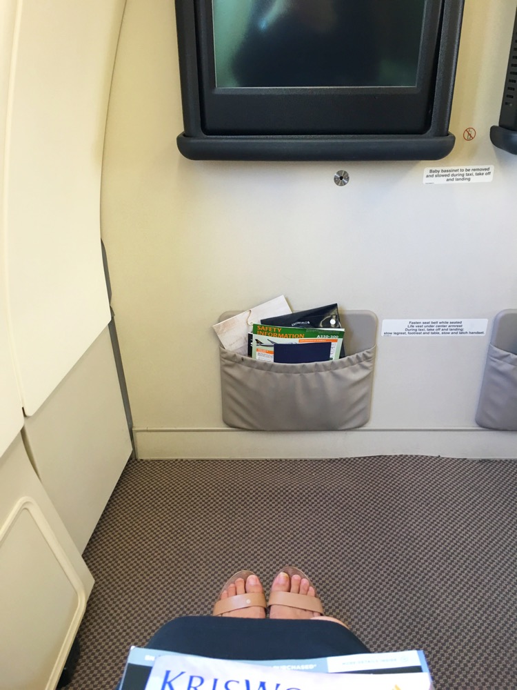 Onboard SQ938 (A330-300), we were served by a team of friendly flight hosts and hostesses. Our seats were 11A and C with the widest legroom of all rows. Even when I stretched my legs straight, I still could not touch the seat pocket in front.