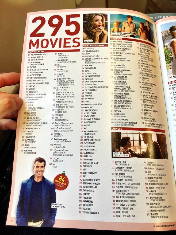 Entertainment on board – just a snapshot of movies of course there’s also ample of other shows, radio stations/ music and games to keep passengers busy.