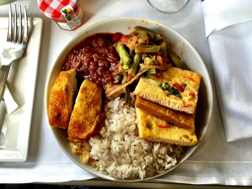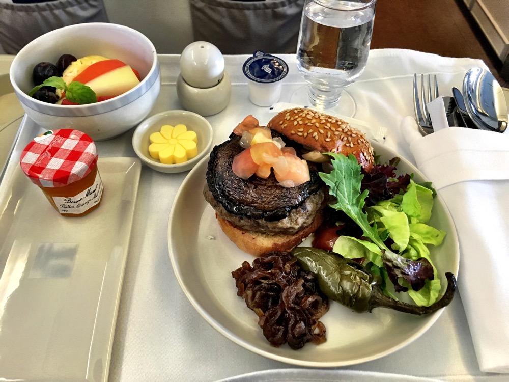 The book the cook burger was better than the standard food onboard. I had the beef noodles and did not like it (beef was tough and noodles quite tasteless), so I was offered the other dish of spicy chicken rice by the flight hostess (still not very tasty but oh well).