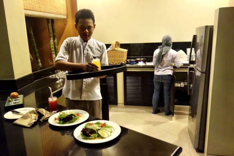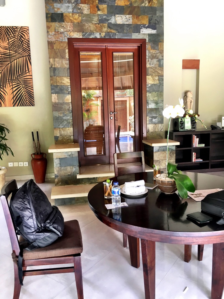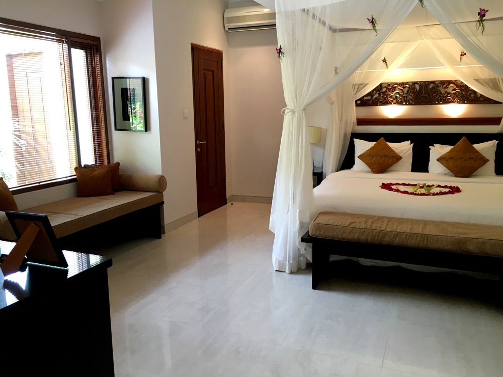 The bedroom and bathroom – the bedroom was the only space in the villa with air con, so we spent most of our time in the room. Toilets are not air conditioned. We are partly thankful for that as we’re always freezing in an air con toilet in hotels but there were mosquitoes. Thankfully they also provide repellents.
