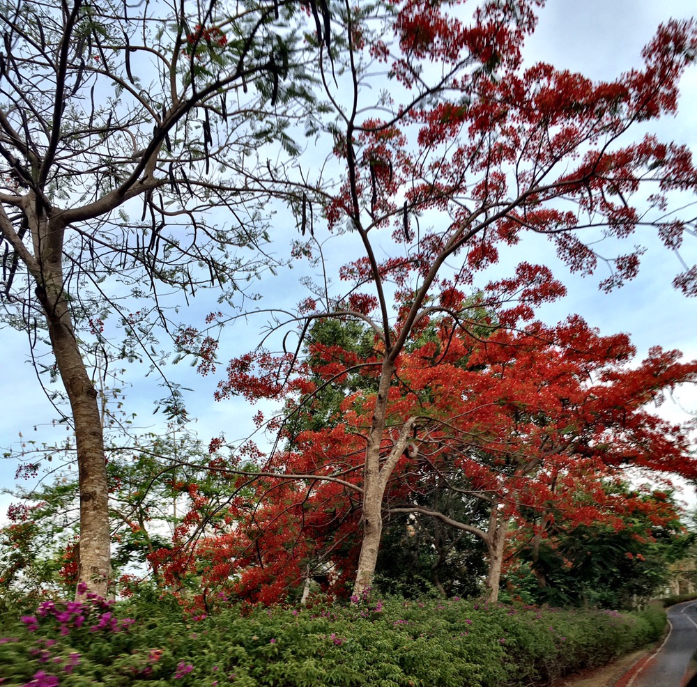 Other interesting findings we spotted were posters outside restaurants, mangoes cut beautifully, snacks on scooter, chicken as a pet, signs alohg roadside, remnants of earthquake/ volcanic eruption, shops recruiting, at cafes, ‘autumn’ colors from the trees in Bali.