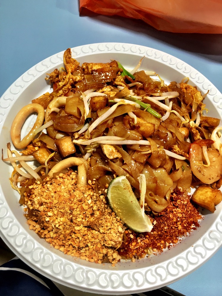 There are quite a few famous hawker stalls at Amoy Street Food Center. To name a few, there’s Hong Kee beef noodle, char kway teow at the corner of the building, Yuan Chun Lor mee, and more. We did not have those but tried some of the other stalls like Thai food – basil chicken rice, green curry, Phad Thai. Wanton and chicken feet noodle and curry puff, yam puffs (no photos for the puffs)