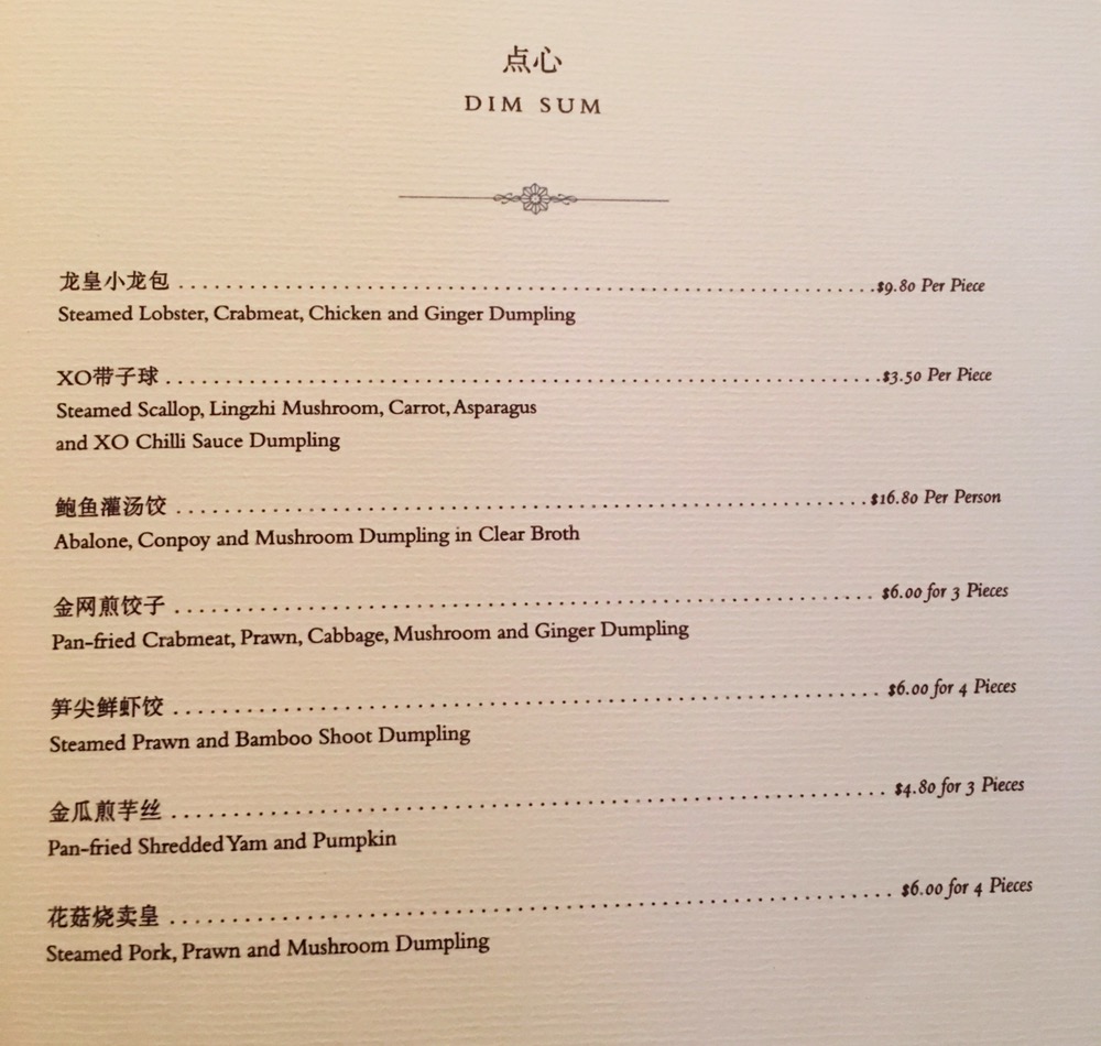 The dim sum menu was not extensive but the quality was one of the best, and prices are on par with it.