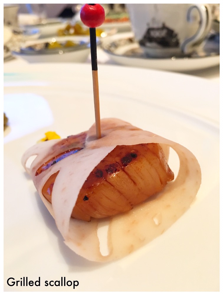 Chilled scallop was average and sitting on top of some green tea soba. The grilled scallop had more flavor but wrapped in a raw slice of lotus root?! Not sure about the rawness, though there was a crunch, it was not pleasant.