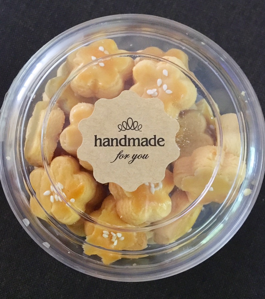 Salted egg cookies are new additions in 2016. They are light, melt in the mouth, slightly savory and sweet and they exude light fragrance from the toasted sesame seeds.