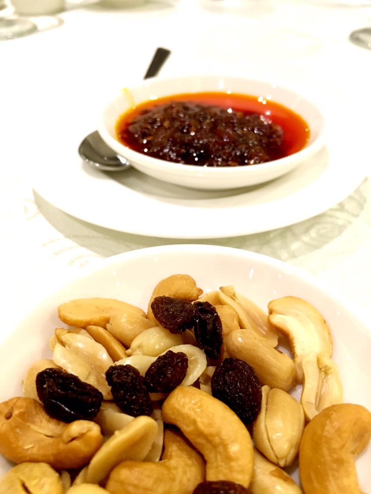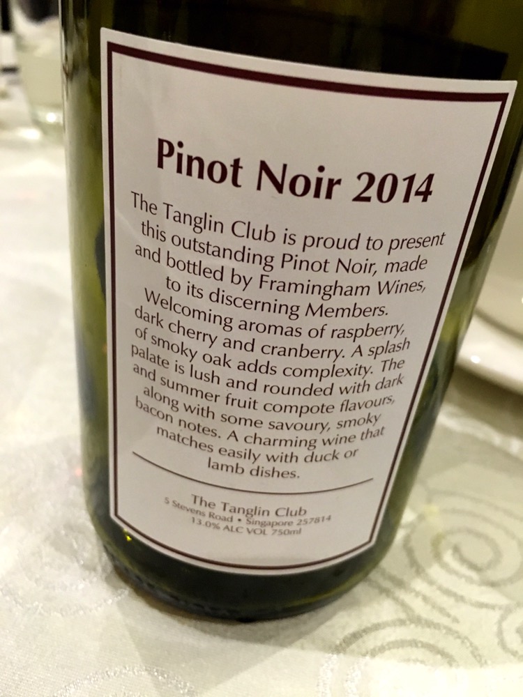 We were served unsalted nuts and raisins mix to nibble before the dishes came, healthy! Then we started off with the Tanglin Club 2014 Pinot noir and a mixed roast meat platter of bbq pork (char Siew), roast duck and roast pork (sio bak). We were impressed with the bbq pork, so tender and the fragrance is not of the usual charred meat, it’s got that delicate smoked taste which was quite special. The roast pork skin was crispy and e cut of meat was not too fatty.