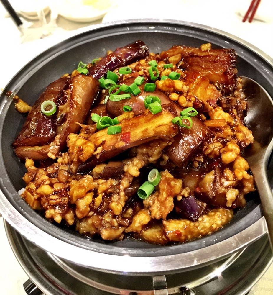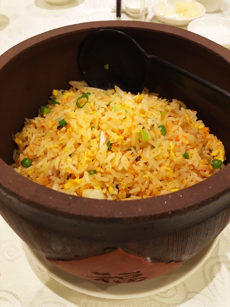 Fried rice with scallops, crab meat, fish roe & diced mushrooms recommended by one of the wait staff was the most disappointing dish of the evening. There was no wok hei, not much seafood nor taste. But thanks to the eggplant dish, the fried rice was more palatable. The presentation of this dish was interesting though, it came in an earthen pot resembling ancient rice storage urns.