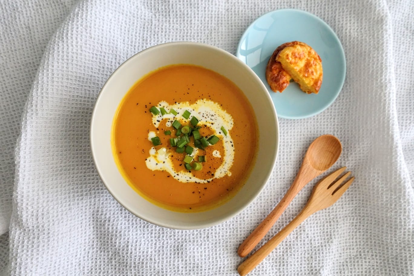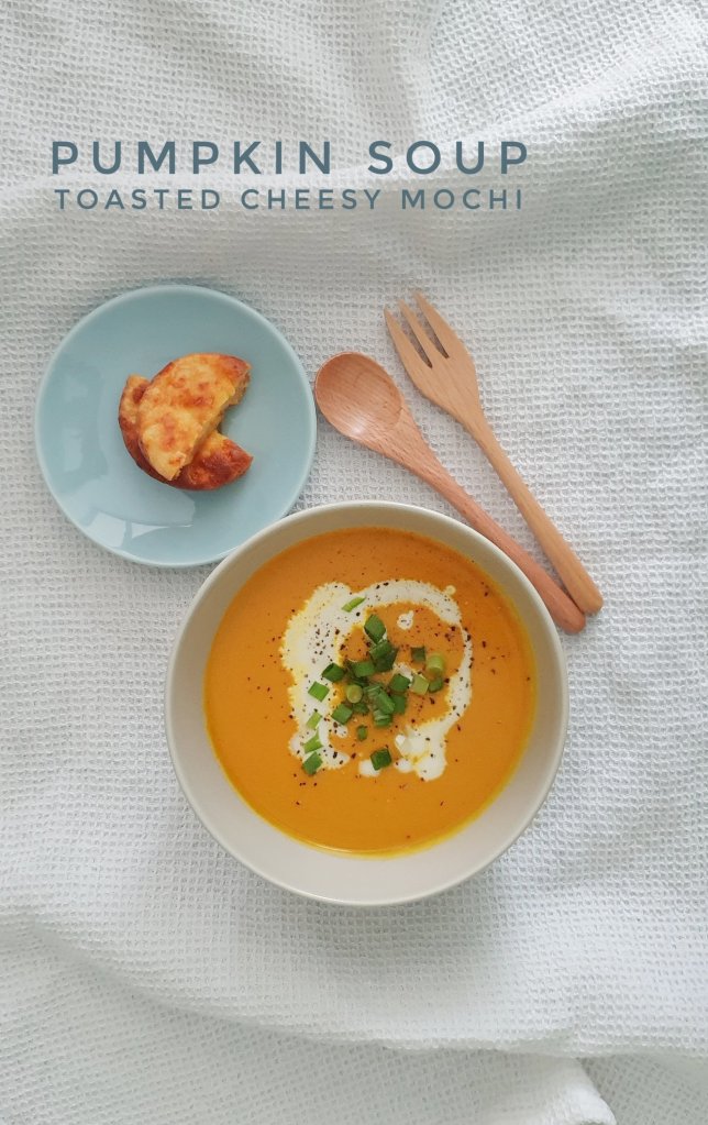 We toasted the Cheesy mochi bakes to have with the soup. The light and natural sweetness from the pumpkin was so nice with the savoury chewy goodness. Not much cream went into the soup, no milk was added. For a healthier version, skip cream or milk. The garlic butter and onions will elevate the taste of this soup! Enjoy making this easy and delicious dish…