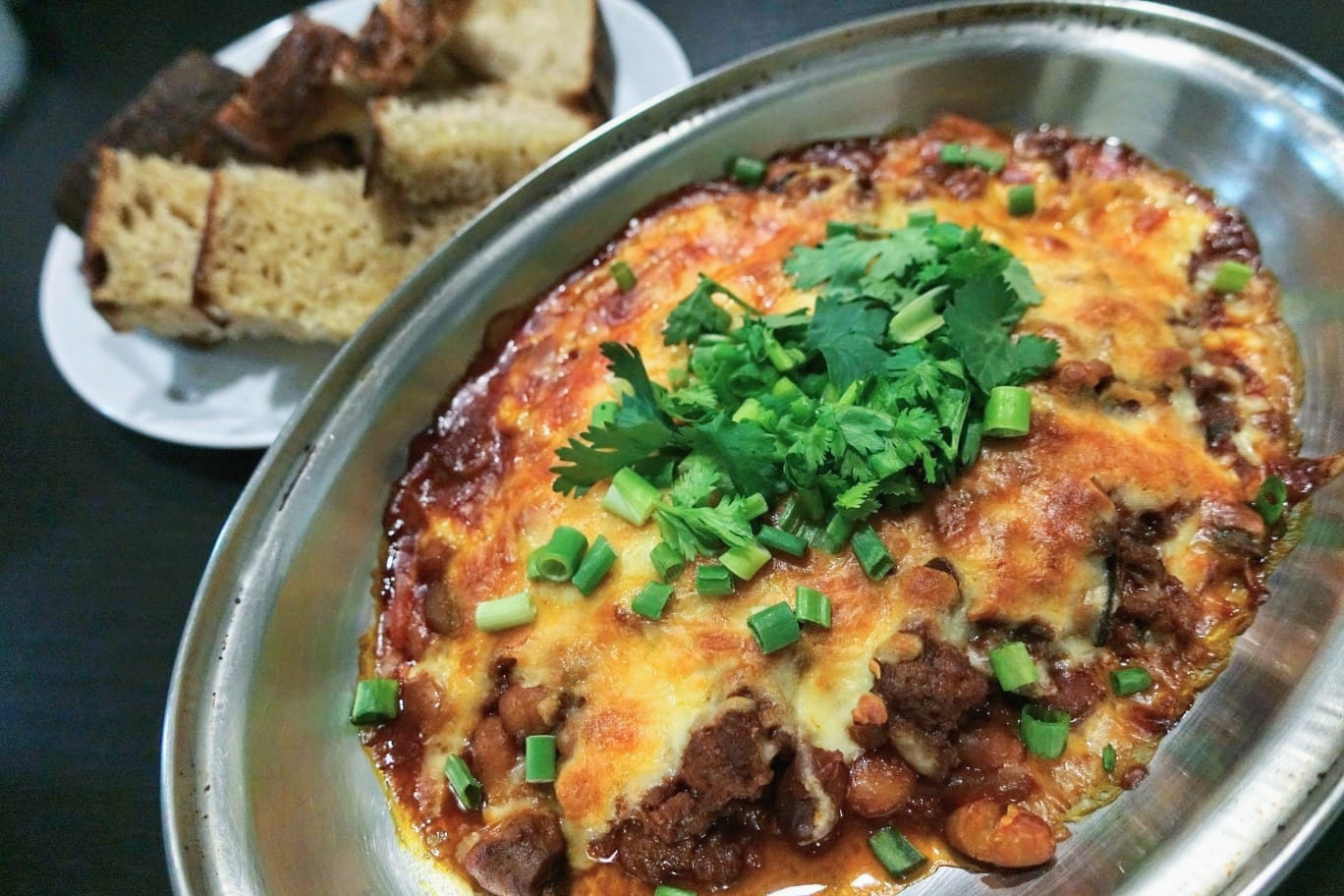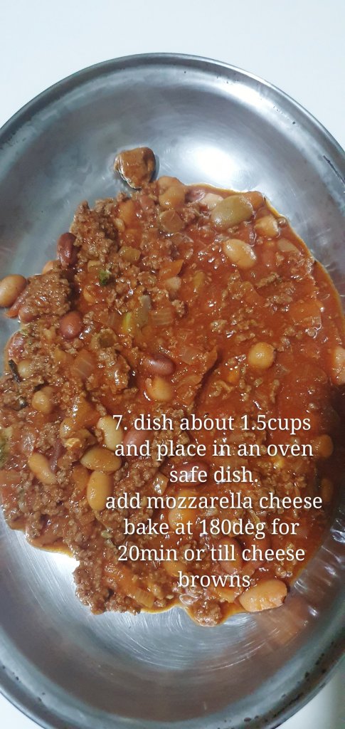 From the pantry, gathered tomato puree, smoked oysters, mixed beans and decided to make a gratin. Never before have I tried cooking oysters with beef but well, gave it a try and it turned out quite well!