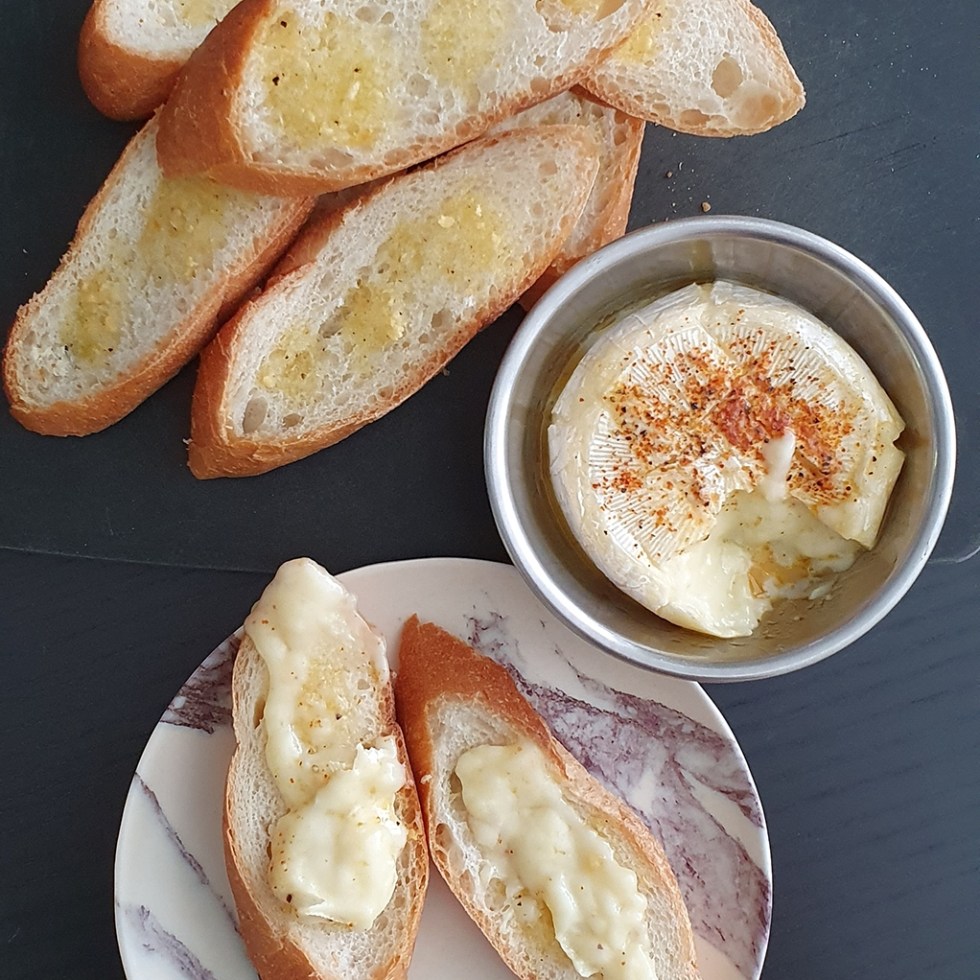 Creamy baked camembert with garlic toasts